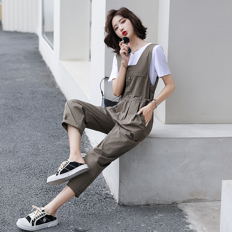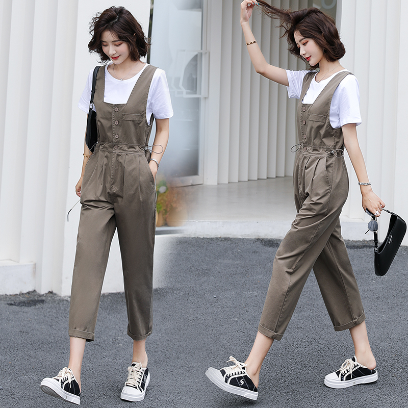 减龄休闲网红夏季女背带裤套装修身显瘦工装连体裤薄款宽松九分裤