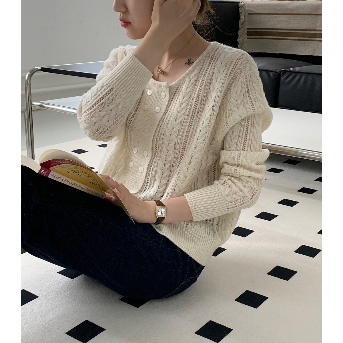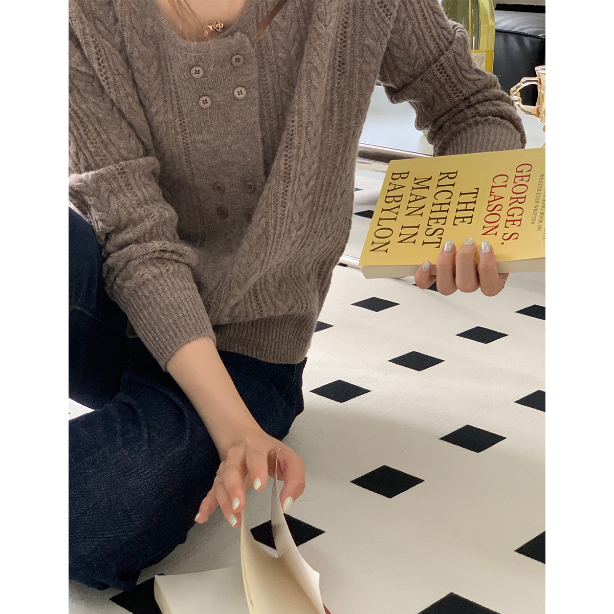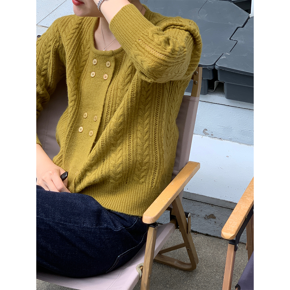 全羊毛复古双排扣款宽门襟 绞花小重工秋冬毛衣