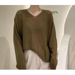 秋季新款欧货不规则下摆宽松纯色羊毛针织V领上衣女潮