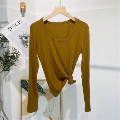 修身显瘦低领螺纹打底衫女长袖圆领内搭基础款上衣