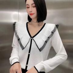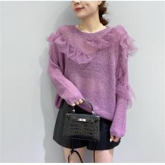 荷叶边网纱拼接设计秋季新款宽松显瘦慵懒风薄款马海毛毛衣女