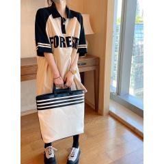 字母polo领短袖T恤女夏季欧洲站宽松大版中长款宽松遮肉上衣