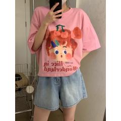 夏新款字母小女孩图案宽松圆领短袖T恤百搭上衣女