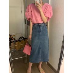 高腰牛仔半身裙女中长款韩版百搭开叉直筒一步裙包臀裙
