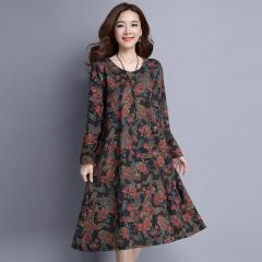 大码连衣裙胖女人遮肚显瘦文艺宽松修身时尚长袖裙子秋季新款2019