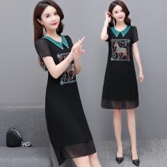 新款黑色遮肚雪纺薄款小个子妈妈裙子