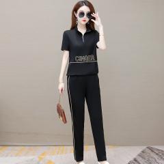 夏天新款修身高端气质短袖休闲洋气套装