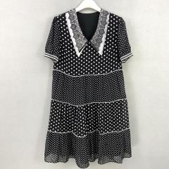 夏季新款大码气质显瘦娃娃领波点拼接中长连衣裙