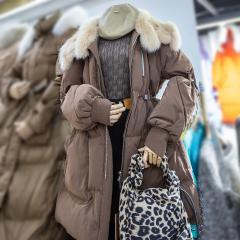 工装羽绒服女中长款新款大毛领抽绳宽松白鸭绒韩国东大门外套