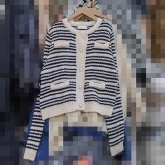 秋冬新款毛衣开衫女外穿时尚洋气条纹针织衫外套