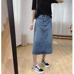 无弹后开叉复古高腰牛仔裙半身裙女夏