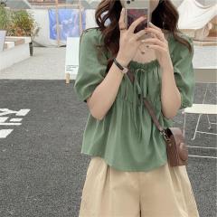 夏季法式甜美方领荷叶边娃娃衫上衣洋气短款设计感小众衬衫T恤女