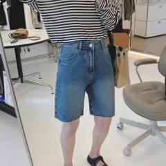 夏季推荐 韩国牛仔五分裤 夏日薄款牛仔短裤 毛边直筒中裤女