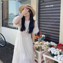 法式超仙泡泡袖连衣裙女新款韩版收腰裙子夏季显瘦气质中长裙