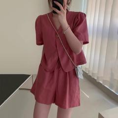 韩国洋气套装女夏季新款短袖西装外套高腰阔腿短裤法式气质两件套