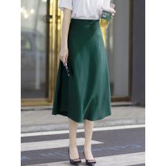 墨绿色半身裙春夏 a字裙子高腰百褶裙显瘦长裙复古大摆裙