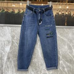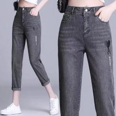 牛仔裤女夏季薄款显瘦老爹八九分裤新款高腰腰爱心小脚哈伦裤