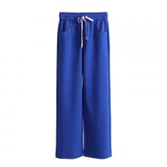 巨显瘦显腿直~撞色抽绳松紧高腰直筒裤阔腿裤长裤