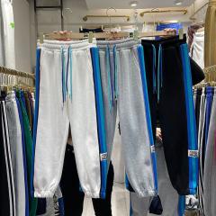 白色卫裤女潮欧货春克莱因蓝撞色拼接彩色织带高腰宽松束脚哈伦裤