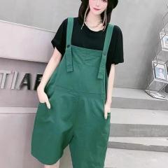 夏季新款微胖妹妹mm洋气显瘦套装T恤背带裤子两件套