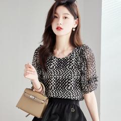 碎花雪纺衫女短袖夏季新款时尚别致漂亮小衫宽松显瘦洋气上衣
