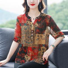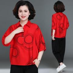 中老年宽松短袖衬衫新款中老年妈妈洋气宽松衬衫