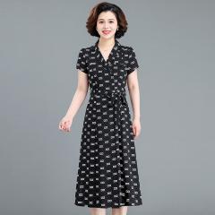 年轻妈妈夏装气质连衣裙中年女新款40岁50中老年夏季短袖洋气裙子