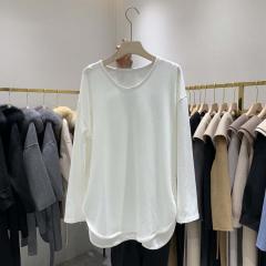 韩国东大门秋冬时尚长袖U领加绒纯棉套头开衩文艺百搭打底上衣女