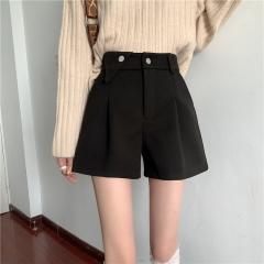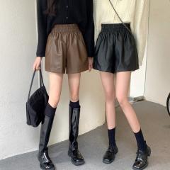 新款高腰显瘦A字阔腿短裤百搭休闲宽松靴裤女装皮裤子