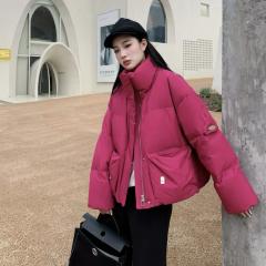 冬季新款立领单排扣纯色舒适保暖羽绒服韩系宽松显瘦短款品质外套