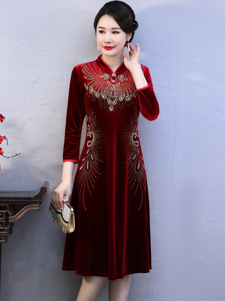 妈妈装中长款民族风两件套中老年时尚高贵蚕丝连衣裙潮中袖薄外套